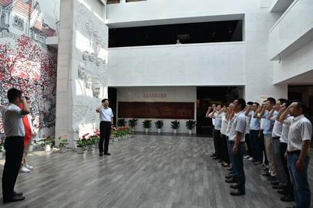 党员干部先后参观了中共代表团办事处旧址、国共南京谈判史料陈列馆等专题展区。馆内的丰富的文献资料、历史照片,以及珍贵的实物资料,充分展示了以周恩来同志为首的中国共产党代表团于1946年5月至1947年3月期间,同国民党政府进行了10个月零4天的谈判,进行针锋相对、有理有利有节的斗争历程,体现了周恩来等老一辈无产阶级革命家为争取和平,不顾自身安危的无私奉献精神和高尚的爱国情操。纪念馆内,同志们仔细阅读当年历史事件介绍,认真观摩反映当年历史事件的文物,真切地感受到周恩来等老一辈无产阶级革命家们的革命精神和英雄气概。在周恩来总理铜像前,宋宏坤专员带领全体党员重温入党誓词,在鲜红的党旗面前,缅怀革命前辈的光辉业绩,重忆入党初心。